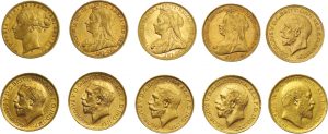 dont 4 Victoria, 5 Georges V et 1 Edouard VII (traces de monture).