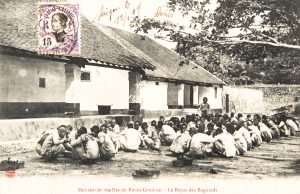 Bonne animation : repas des bagnards au pénitencier des Iles de Poulo-Condore, Troupes au Tonkin, Flotille du service subventionné des correspondances fluviales à Haiphong, types et métiers en Chine, Indochine,Corée, Bornéo, Cambodge...Mission au Siam.