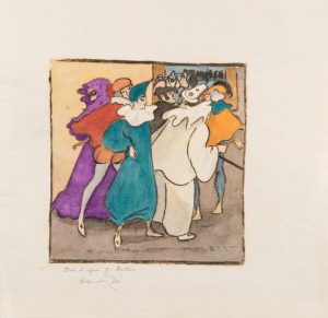 Trois gravures sur bois de Harry Van der Zee dont deux épreuves sur japon imp. en couleurs, une épreuve légendée à la mine de plomb : ‘Bois d’après g. Bottini H.van der Zée’.