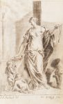 - Planche (2) : 1 dessin pleine page à la pierre noire. Allégorie de l’architecture, signée ‘J. De. Sandrard del. et del. N.Weiss’, datée 1782.