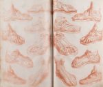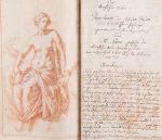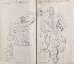 - Planches (3) à (26) (1p. et 13 ff. recto-verso) : 27 planches de dessins à l’encre et lavis. Etudes d’architecture, éléments décoratifs de figures classiques de l’antiquité gréco-romaine, allégories des beaux-arts... Plusieurs planches avec légendes manuscrites et formules chiffrées pour la réduction des modèles.