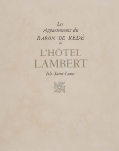 [ART]. - Les Appartements du Baron de Redé en l’Hôtel Lambert. Texte de la Princesse Bibesco et de René Héron de Villefosse. Illustrations de Jean-Louis de Maigret, et 15 photographies au charbon de Jean Vincent.