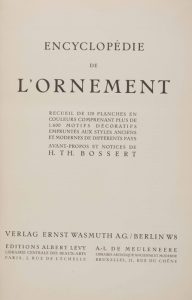 [ART]. – BOSSERT (H. TH.). - Encyclopédie de l’ornement. Recueil de 120 planches en couleurs comprenant plus de 1600 motifs décoratifs empruntés aux styles anciens et modernes de différents pays. Avant-propos et notice de H.TH. Bossert.