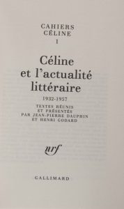 Paris, Gallimard, 1976-1988, 8 vol. in-8 (14x20,5cm). Broché. 1-2. Céline et l’actualité littéraire (1932-1961) - 3. Semmelweis et autres écrits médicaux.- 4. Lettres et premiers écrits d’Afrique (1916-1917). - 5. Lettres à des amies.- 6. Lettres à Albert Paraz (1947-1957). - 7. Céline et l’actualité (1933-1961). - 8. Progrès, suivi des œuvres pour la scène et l’écran. La plupart des textes sont des inédits au moment de leur sparutions.Très bon état.