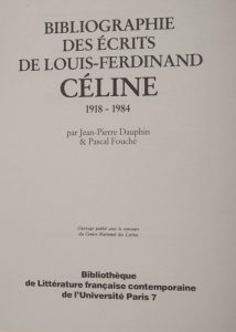 DAUPHIN (J.-P.) et FOUCHE (P.) - Bibliographie des écrits de Louis- Ferdinand Céline (1918-1985)