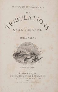 Ce très beau cartonnage eut l’effet d’une bombe lorsqu’il sorti, on doit le dessin à Auguste Souze. Il habillera les deux romans « cosmiques » de l’oeuvre : « De la terre à la lune/ Autour de la lune », en retirage (1880), et la première édition illustrée d’ « Hector Servadac » (1877)