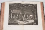Imprimerie des Editeurs 1770 - 1778 Livourne, 33 volumes reliés en 30 volumes in-folio (420 X 285 mm), pleine basane fauve granité, dos à nerfs ornés de caissons, fleurons et palettes dorés, pièces de titre et de tomaison de maroquin vieux-rouge, pièces de référence alphabétique de maroquin olive, tranches brique (Reliures de l’époque). 17 volumes de texte. Les 11 volumes de planches et le volume de supplément de planches sont reliés en 9 volumes et comprennent 3129 planches, (les planches doubles comptant pour 2, les planches triples pour 3 et les planches quadruples pour 4) les planches doubles, triples et quadruples sont montées sur onglets. 4 volumes de supplément. La table analytique et raisonnée des matières contenues dans les XXXIII volumes du Dictionnaire des sciences, des arts et des métiers et dans son supplément publiée en 2 volumes en 1780 est absente. Les ouvrages présentent quelques épidermures, 4 coiffes arasées, des coins émoussés, Les tomes 4 et 5 du texte ont des petites mouillures marginales, très minime galerie de vers au tome 8, 3 planches de zoologie ont des déchirures avec manques, 4 planches de zoologie ont été restaurées.