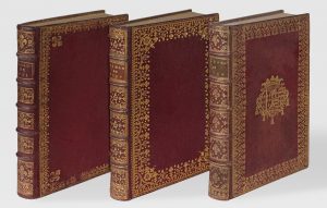 Le type de papier gaufré qui orne les doublures a été inventé en Allemagne à la fin du XVIIe siècle et son décor s’inspire souvent de motifs baroques floraux.
