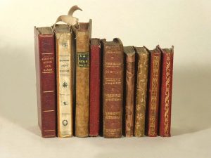 [ALMANACH]. • Ensemble neuf almanachs du début du XIXe siècle. Cadeau des Muses. Étrennes utiles et agréables. Falaise, Brée ; Paris, Rouen, 1807 et 1811. 2 volumes in-16, maroquin rouge orné d'une plaque dorée, tranches dorées (Reliure...