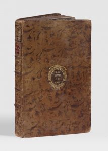 Reliure frottée, coins usés, galerie de ver supprimant le mot Loi sur le premier plat, quelques taches et rousseurs éparses.