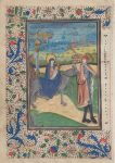 Quelques traits fins esquissent les visages. Le style des miniatures rappelle le Maître aux yeux bridés, à qui l’on attribue plusieurs livres d’heures (New York, Columbia University, Benjamin ms. 5 ;