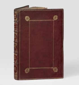 emblématiques alternés, roulette sur les coupes, dentelle intérieure, tranches dorées (Reliure de l'époque).