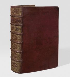 2 parties en un volume in-folio, maroquin rouge, dos orné, roulette sur les coupes, dentelle intérieure dorée, tranches dorées sur marbrure (Reliure de l'époque).