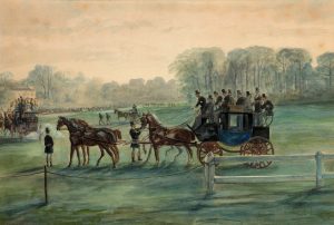 CRAFTY. Chasse à courre en forêt. Aquarelle signée
