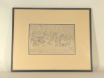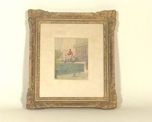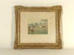 Saut d'obstacles. Aquarelle signée (11 x 8), cadre en bois doré.