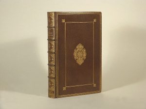 d'arabesques azuré au centre, dos orné, dentelle intérieure dorée, tête dorée, non rogné, étui (Claessens).