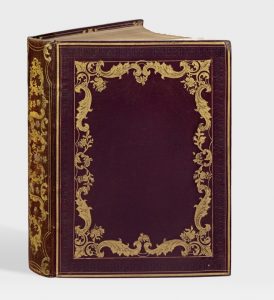 et argentés, coupes ornées, encadrement intérieur de filets et fers rocaille dorés, doublures et gardes de percaline moirée, tranches dorées (Bonhomme).