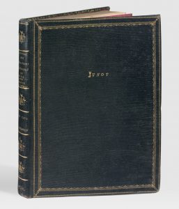 Seconde édition, considérablement augmentée et enrichie de deux tableaux dépliants et d'une carte de la place et des environs de Gênes. Exemplaire ayant probablement appartenu au général Jean-Andoche Junot (1771-1813), dit « la Tempête », avec son nom doré sur le premier plat. Bel exemplaire, malgré quelques menus frottements à la reliure.