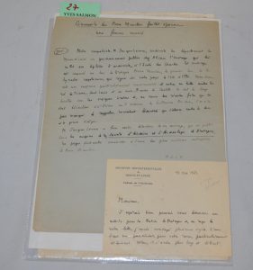 LEVRON (Jacques) Archiviste du Maine-et-Loire. MANUSCRIT d'un texte intitulé : Comment le duc Pierre Mauclerc faillit épouser une femme mariée. Pour la Société d'Histoire et d'Archéologie de Bretagne. 3 pp. (20x31).