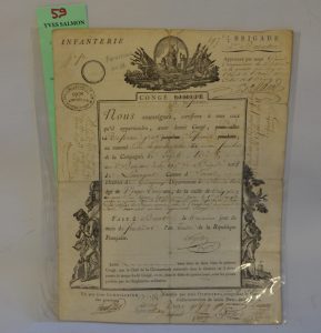 CONGÉ DE RÉFORME à Pierre Legarlantezec de Louergat, district de Guingamp. Fait à Brest le 13 fructidor An IV. Signatures du Commissaire des Guerres, des Officiers et du Général Commandant.