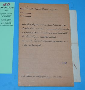 [CERTIFICAT AUTOGRAPHE] MERMET (Général Auguste) - Armée des côtes de l'océan. 1796. Troupes de Ploërmel, Josselin et Pontivy. Certificat autographe signé du Général MERMET Auguste (1772-1837), Aide de Camp du Roi Charles X, commandant des...