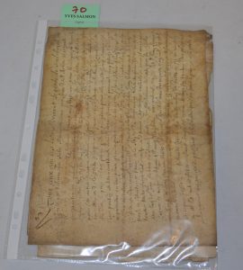 BAILLIAGEe D'AVRANCHES (3 pp.) 1670 et Pontorson (4 pp.) 1690. Acte notarié sur parchemin de 5 pp. ½ (1544 ?).