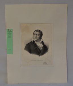 GRAVURE [DELPECH - BELLIARD] - Portrait de Georges Cadoudal sous marie-louise. Lith. par Delpech. Dessin de Z. Belliard. Lithographie en pied. Signature de « Georges » né près d'Auray en 1769, mis à mort à Paris le 25 juin 1804. Quelques...