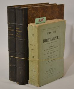 DERIC (M.) Histoire ecclésiastique de Bretagne. 2 vol. de XLIII- 492-658 pp. in-4 reliés ½ chagrin, dos à nerfs. Rennes Vannier 1847 (2e éd.) ; cachet de propriétaire, accroc en pied du dos du vol. 1