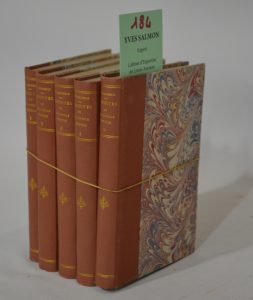 LA BORDERIE (Arthur de) Histoire de Bretagne. 5 vol. de X-179-VII-196-VIII-202-VI-287-173 pp. pt in-12 reliés ½ toile, dos lisse. Rennes Plihon 1880 (E.O.). Tirage justifié à seulement 50 ex. celui-ci n° 47-36-17-17-17).