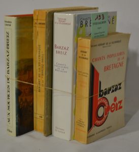 HERSART de LA VILLEMARQUE Chants populaires de la Bretagne – Barzaz Breiz avec musique. Couverture de Xavier de Langlais. 1 fort vol. de LXXXII-539-XLIV pp. in-8 broché. Paris Perrin 1959.