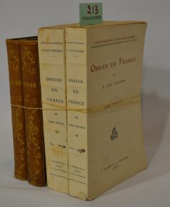 MACPHERSON - Ossian, fils de Fingal, barde du 3e siècle. Poésies galliques. Nlle éd. augmentée des poëmes d'Ossian et de quelques autres bardes. Traduction de Letourneur. 2 vol. de XLVIII-429-[1]-553-[1] pp. in-8 reliés ½ veau, dos lisse à...