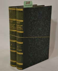 OGÉE - Dictionnaire historique et géographique de la province de Bretagne, dédié à la nation bretonne. 2 vol. de [4]-263-986-[3] pp. gd in-8 reliés ½ basane verte, dos lisse à larges liserés dorés. Rennes Molliex 1843-1853 (Nlle éd....
