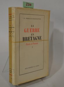 PERRAUD-CHARMANTIER (A.) - La guerre en Bretagne. Récits et portraits. 2 vol. de 196-[1]-277-[1] pp. gd in-8 brochés. Nantes Aux Portes du Large 1947. Illustrations photographiques. Non coupé.