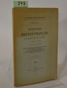 LOTH (J.) - Dictionnaire breton-français du dialecte de Vannes de Pierre de Chalons, réédité et augmenté... 1 vol. de [6]-115 pp. pt in-4 broché. Rennes Plihon & Hervé 1895.