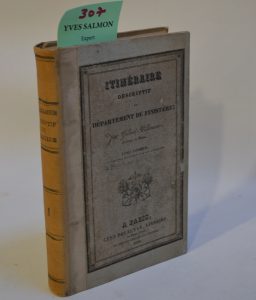 VILLENEUVE (Gilbert) - avocat à Brest Itinéraire descriptif du département du Finistère. 1 vol. de VIII-313 pp. in-8 relié ½ toile éditeur, Tome Premier (seul paru). Paris Delaunay 1828 (E.O.). Avec 1 carte dépliante, 7 planches & 1...