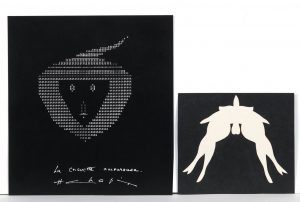 ♦ Sérigraphie originale sur fond noir limitée à 10 exemplaires pour la revue Ou, datée et signée au verso par Henri Chopin.