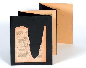 Collage original de papier déchiré contrecollé sur le premier plat par Henri Chopin.