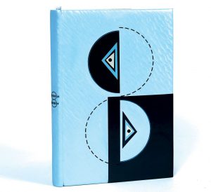 ERNST Max. ÉLUARD Paul. À L’INTÉRIEUR DE LA VUE. 8 poèmes visibles. Paris, Seghers, 1948. In-8, box façonné bleu ciel portant sur les deux plats un décor géométrique constitué de pièces de veau anthracite et de filets hachurés, dos...