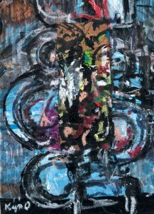 KIJNO. PAPIER FROISSÉ EN COULEURS, SIGNÉ. 28 x 21 cm, sous passe-partout.