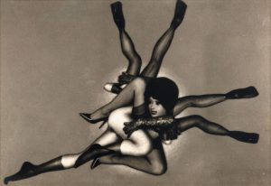 ► Célèbre photomontage tirage argentique d'époque représentant la tête de la poupée parmi un bouquet de jambes.
