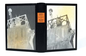 PRÉVERT Jacques. LA PLUIE ET LE BEAU TEMPS. Paris, Le Point du Jour NRF, 1955. In-8, maroquin noir portantsur le premier plat un décor photographique représentant la statue de la Liberté et sur le second plat la même image en négatif, dos...