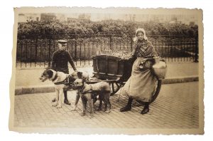 Lot de 54 cartes postales anciennes et semi-modernes: voiture à chien (laitière flamande de Nels vers 1925), petits métiers, costumes régionaux normands (séries Coiffes d'Autrefois, Coiffes d'hier, série illustrée Anciens costumes normands),...