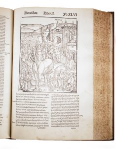 Vergiliana com servij Honorati Grammatici huberrinis commentarijs. Lyon, Jacques Sacon, 1517. 8 ff. et 324 ff. ch. [ff8, A-Z8, AA-QQ8, RR-SS6].Tache d'encre claire f. 25 ; manque angulaire au f. 189. A la suite du texte de Virgile, se trouve le XIIIe livre de l'Eneide de Maffeo Vergio. Le titre, imprime en rouge et noir, est place dans un bel encadrement. 10 ff. n.ch. [TT10]. 2 tomes en un volume in-folio ; veau postérieur, filet à froid en encadrement sur les plats. Dos à nerfs orné. un frontispice et 206 autres grands bois dans le texte provenant de l'édition de Strasbourg de 1502. Manque à la coiffe supérieure. Coins émoussés. Mors anciennement restaurés mais faibles. Petites galeries de ver. Mouillure claire ancienne, mais bon exemplaire. [Baudrier, XII, p. 344-345. Brunet V-1282]. Ex-libris armorié de la bibliothèque Caumartin. « Une bibliothèque remarquable » :
