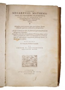 EUCLIDE. Elementa, libris XV. ad Germanam geometriae intelligentiam e diversis lapsibus temporis iniuria contractis restituta. Lyon, Jean de Tournes pour Jacob du Puys à Paris, 1578. In-folio, vélin de l'époque. Ouvrage illustré de nombreuses...
