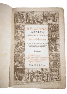 Battista Ciotti), 1608. in-folio ; Demi-vélin à petits coins postérieur. Dos lisse. Pdt. Titre gravé, 25 ff. et 982 pp. 2 planches. *Joint : Avicennae arabum medicorum principis Ex Gerardi Cremonensis versione, et Andreae Alpagi Bellunensis castigatione. A Joanne Costaeo, et Joanne Paulo Mongio Annotationibus iampridem illustratus ... Vita ipsius Avicennae ex Sorsano Arabe eius Discipulo, a Nicolao Massa Latine scripta. Additis nuper etiam librorum Canonis oeconomijs, necnon Tabulis Isagogicis in universam Medicinam ex Arte Humain, id est Joanitii Arabis. Per Fabium Paulinum Vtinensem. Cum Indicibus quattuor ... Tomus secundus. Venise, Juntas 1595 14 ff. et 437 pp. et 1 f. blanc. 152 ff. d'index. 2 planches montrant en 6 figures différents traitements de la douleur lombo-sacrée. (reprises du tome 1). @Belle édition vénitienne imprimée par Bernardo Giunta et Giovanni Battista Ciotti des œuvres du médecin arabe Avicenne (980?-1037). Elle contient le Canon d'Avicenne en cinq livres embrassant tous les domaines de la médecine connus à l'époque de l'auteur. Mouillures claires anciennes. Petits trous de vers. Un coin cassé. Mors en partis fendus. Osler, 472 (édition de 1608)