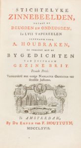1767. LIBRO. (ARTE-GRABADO). HOUBRAKEN, Q.: STICHTELEYKE ZINNEBEELDEN, GEPAST OF DEUGDEN EN ONDEUGDEN, IN LVII TAFEREELEN VERTOOND DOOR. Amsterdam : Imp. Erven van F. Houttuyn, 1767. 8º mayor.