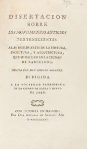 1786. LIBRO. (ARTE). BOSARTE, ISIDORO: DISERTACION SOBRE LOS MONUMENTOS ANTIGUOS PERTENECIENTES A LAS NOBLES ARTES DE LA PINTURA, ESCULTURA, Y ARQUITECTURA, QUE SE HALLAN EN LA CIUDAD DE BARCELONA. Madrid: Antonio de Sancha, 1786. 8º.