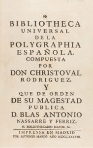 1778. LIBRO. (BIBLIOGRAFÍA). RODRÍGUEZ, CHRISTOVAL: BIBLIOTHECA UNIVERSAL DE LA POLYGRAFIA ESPAÑOLA, COMPUESTA POR DON.. Madrid: Imp. Antonio Marín, 1778. Gran folio.