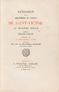 1862. LIBRO. (BIBLIOFILIA). RABELAIS, FRANÇOIS: CATALOGUE DE LA BIBLIOTHÈQUE DE L'ABBAYE DE SAINT-VICTOR AU SAIZIÈME SIÈCLE. Paris : Libr. J. Tecjener, 1862. 4º menor.