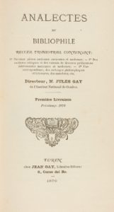 1876. LIBRO. (BIBLIOFILIA). JULES GAY, M.: ANALECTES DEU BIBLIOPHILE. Turin : Ed. Jean Gay, 1876. 3 vol. en 8º menor.